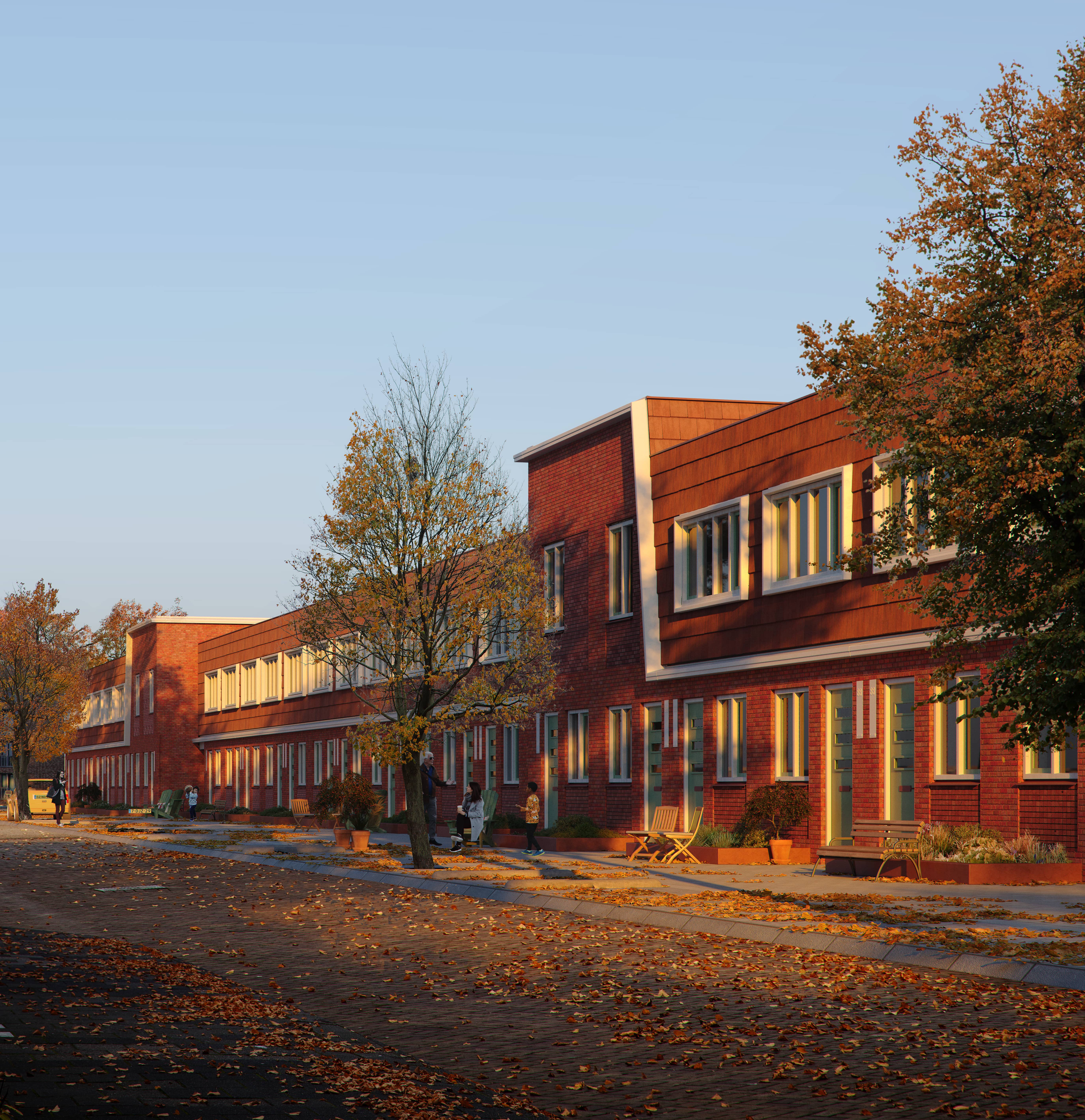- Modulaire bouw: 3D in fabriek inclusief badkamer, keuken en installatievoorbereiding.